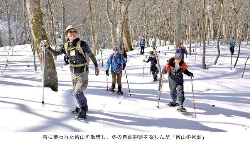 雪に覆われた里山のトレッキングを楽しむ自然観察会「留山冬物語」は22日、八峰町八森の留山で開かれました。