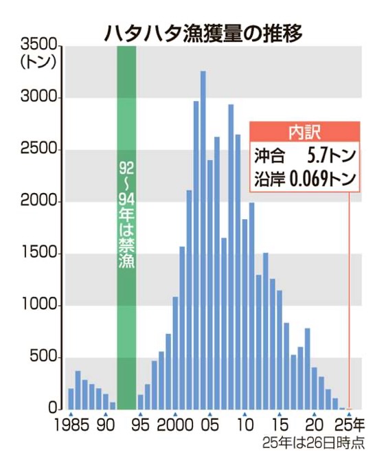 䞀方、産卵のため沿岞に来るハタハタを取る季節持は壊滅的な状態だ。
