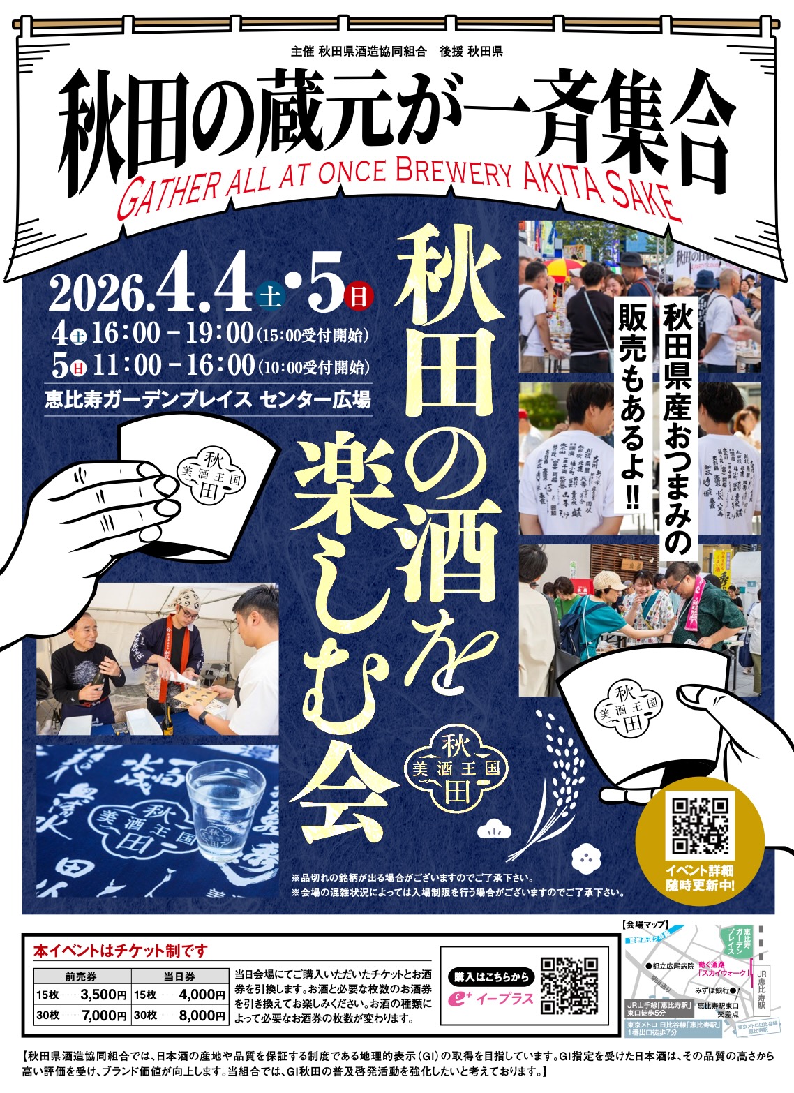 2024年4月の開催に続き、都内屋外イベント「秋田の酒を楽しむ会in東京」を恵比寿ガーデンプレイス・センター広場で開催いたします。