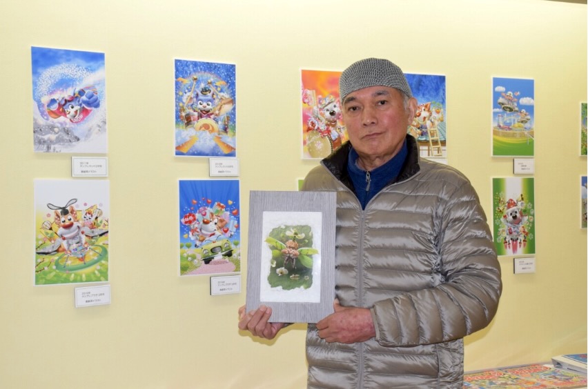 古里で創作活動継続 八峰中に作品展示中 イラストレータ一の須藤さん