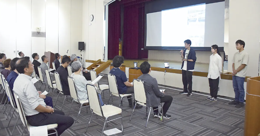 八峰町の1次産業の課題解決に向けた提案を行おうと活動してきた東京大学の学生団体・東大生地方創生コンソーシアムの学生3人による成果発表会は19日、同町峰浜田中の峰栄館で開かれました。